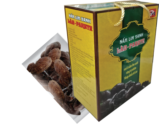 Nấm Lim xanh lào-Parbye được đóng gói và đựng trong hộp giấy 0.5kg và 1kg, có dán tem đảm bảo chống hàng giả của công ty ( Hình ảnh mẫu dưới)
